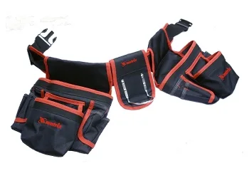 Двойната чанта-колан позволява преместването на всички основни инструменти, необходими за работа. Върху колана са сложени две чанти с джобове и държател за чук, които служат не само за местене на инструменти, но и за организация на удобен достъп към него. Всички детайли върху колана са направени от здрав синтетичен материал.