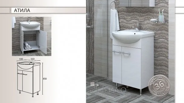 Обзавеждане за баня със стилен дизайн. Подходящо за влажни и мокри помещения. Изработено от PVC! В зависимост от наличноста доставката се извършва в срок до 20 дни.