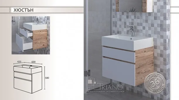 Обзавеждане за баня със стилен дизайн. Подходящо за влажни и мокри помещения. Изработено от PVC! В зависимост от наличноста доставката се извършва в срок до 20 дни.