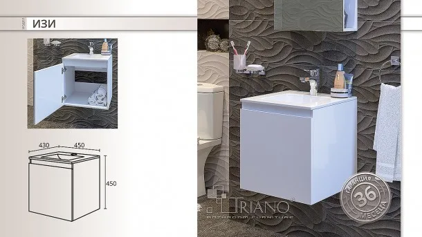 Обзавеждане за баня със стилен дизайн. Подходящо за влажни и мокри помещения. Изработено от PVC! В зависимост от наличноста доставката се извършва в срок до 20 дни.