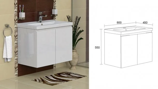 Обзавеждане за баня със стилен дизайн. Подходящо за влажни и мокри помещения. Изработено от PVC! В зависимост от наличноста доставката се извършва в срок до 20 дни.