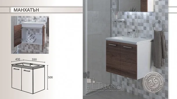 Обзавеждане за баня със стилен дизайн. Подходящо за влажни и мокри помещения. Изработено от PVC! В зависимост от наличноста доставката се извършва в срок до 20 дни.