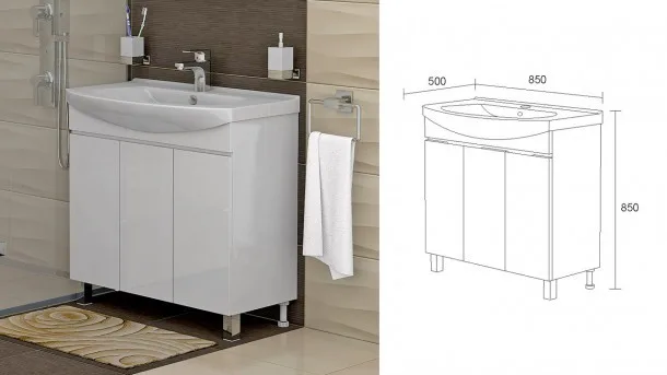 Обзавеждане за баня със стилен дизайн. Подходящо за влажни и мокри помещения. Изработено от PVC! В зависимост от наличноста доставката се извършва в срок до 20 дни.
