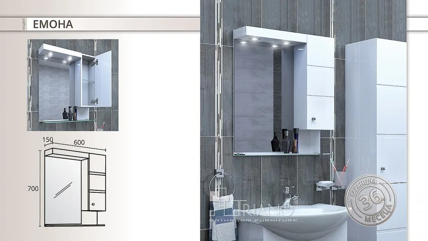 Обзавеждане за баня със стилен дизайн. Подходящо за влажни и мокри помещения. Изработено от PVC! В зависимост от наличноста доставката се извършва в срок до 20 дни.