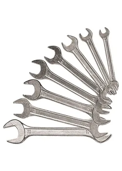 Ключът е направен от въглеродна стомана. Твърдостта на материала на работната част на ключа е 42 HRc (изисквания ГОСТ – 41-46 HRc). Има надеждно защитно покритие от хром. Опаковани са в полиетилен. Ключове гаечни двустранни са предназначени за монтаж и демонтаж на резбови съединения.