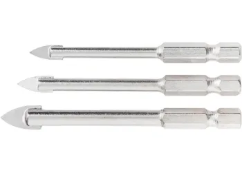 В комплекта са включени най-често срещани и популярни размери на свредла за керамика. 6-стенна опашка позволява използването на инструмента както с дрелка, така и с винтоверт.