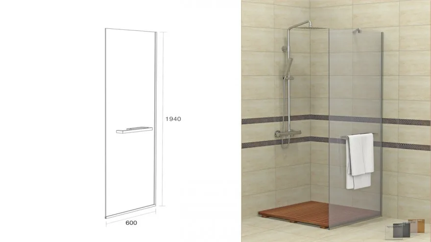 Срок на доставка: Ще се свържем с Вас. Цената включва: параван за баня и обков. * При размер над 700мм обтегачът е прав Възможни варианти: 1. В цвят – син, зелен, сив, кафяв 2. Вид стъкло – прозрачно, матирано, с орнамент 3. Стъкло Guardian ShowerGuard