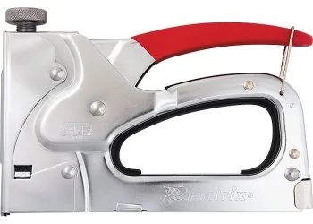 Мощен стоманен такер. Регулируема сила на удара осигурява прекрасно укрепване за основа от всякакъв материал. Универсален механизъм дава възможност за използване на 4 различни тип скоби 36, 140, 300 (пирони) и 500 (щифта) от типа.